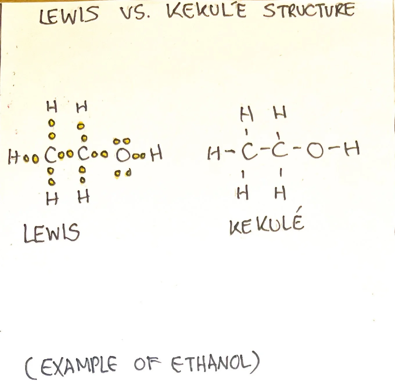 Atoms and molecules can be drawn using Kekulé or Lewis structures. Lewis structures use dots to represent electrons and depict the unbonded electrons. The Kekulé structure uses lines to represent electron pairs and does not depict unbonded electrons.³ However, the Lewis structure may also contain lines while the Kekulé structure may contain dots as they are often drawn in different manners. Bond-line formulas are used to show carbon bonds among other functional groups. ³ The condensed formula makes it easier to draw these structures considering that it depicts how atoms are arranged.