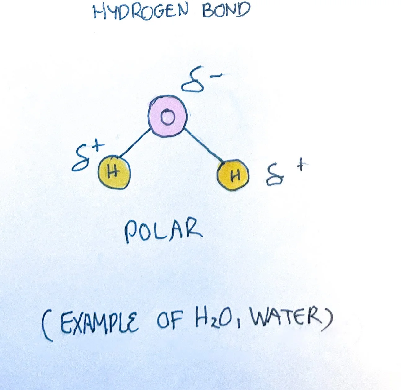 Hydrogen Bonds - the partial positive hydrogen attracts a partial negative charge of another atom, typically oxygen or nitrogen, causing the formation of a bond.¹ This is weaker than both ionic and covalent bonds but necessary for many compounds, including carbohydrates, lipids, and protein.