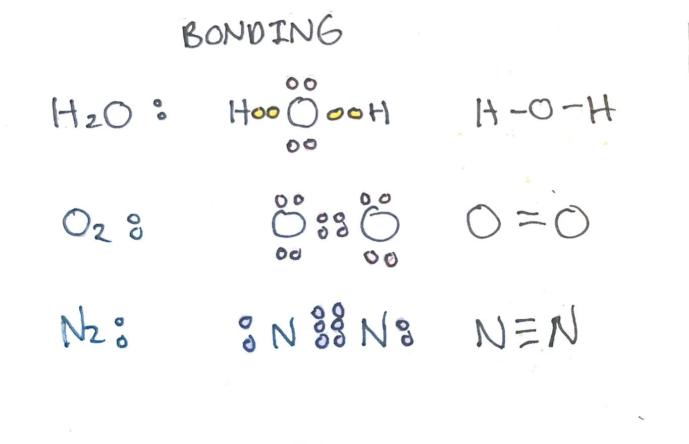Example: H₂O (2 hydrogen atoms, 1 oxygen atom)