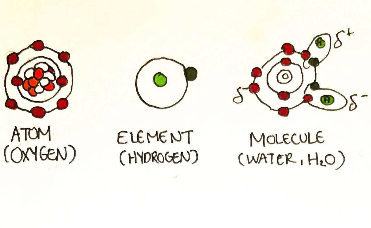 What are atoms, elements, and molecules?