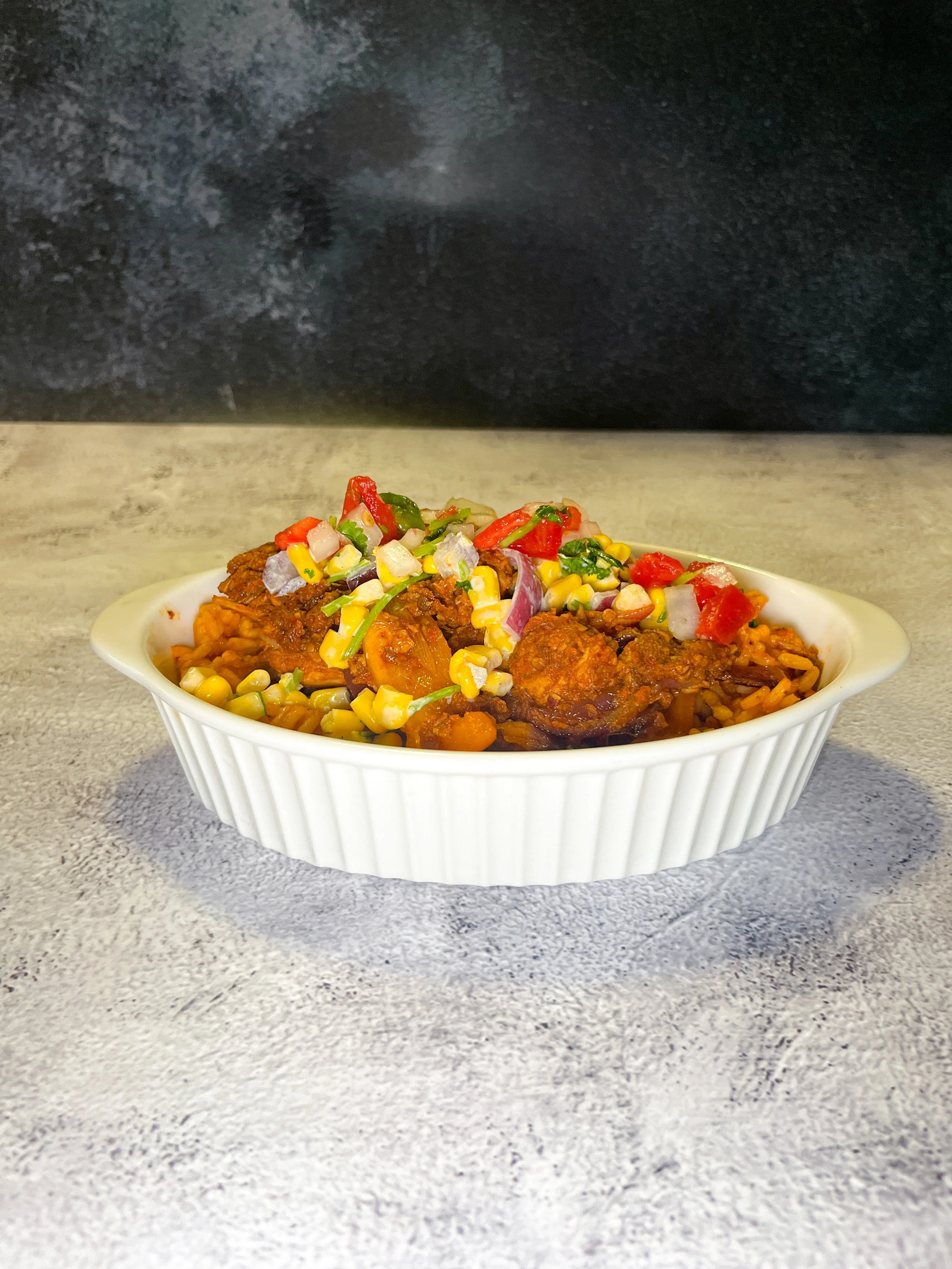 My take on Mexican chicken and rice! Enjoy robust flavors and pair with delicious sides of pico de gallo and Mexican corn. I made this recipe in hopes of capturing key spices and ingredients used within this cuisine. Although it may not be what is considered authentic, I promise you will enjoy it!
