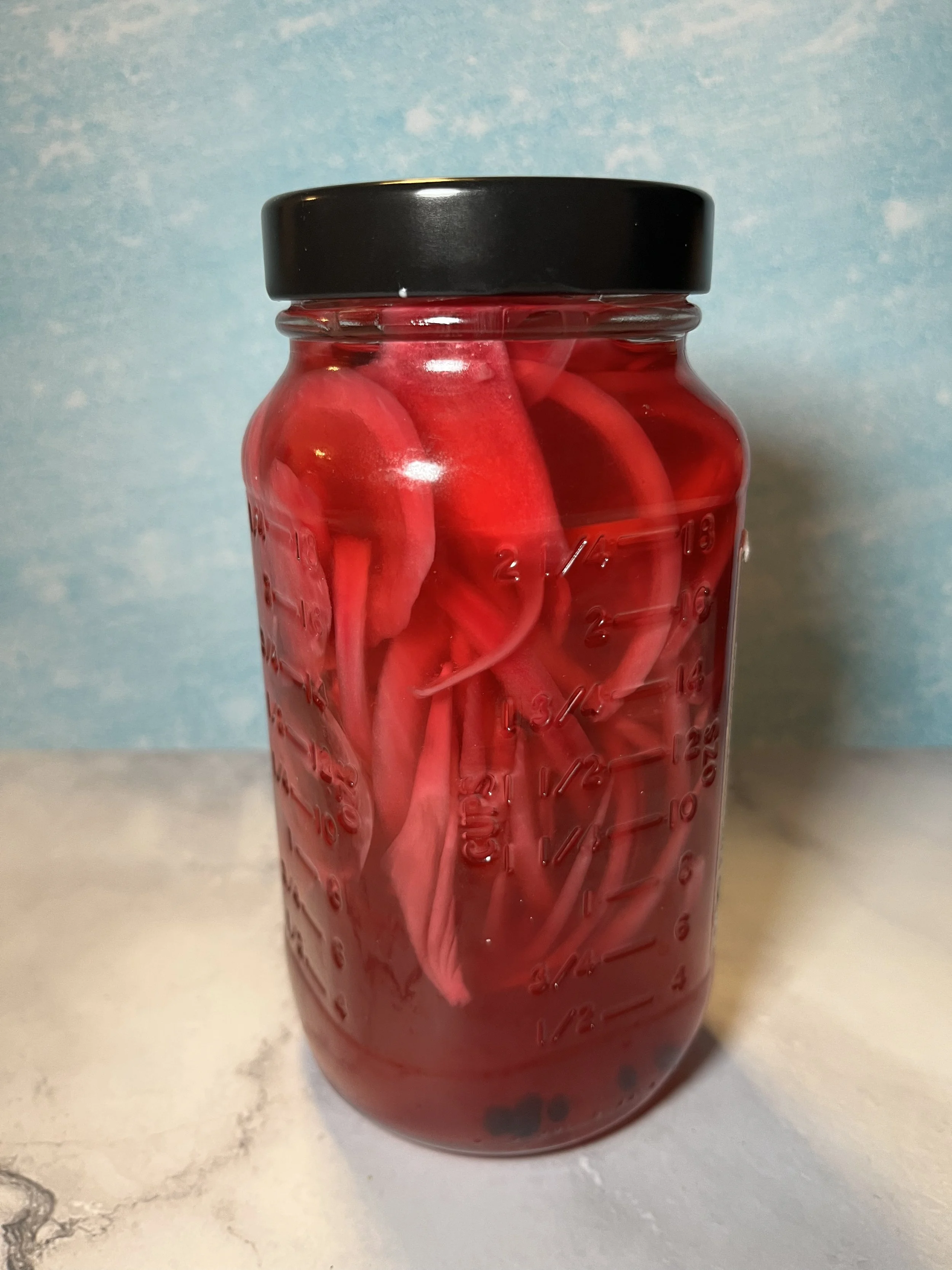 My recipe for quick pickled red onions. It works well as a topping for sandwiches, burgers, salads, and more! Hope you enjoy!